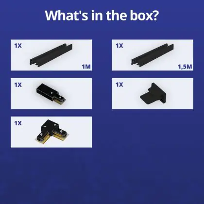 Beschreibung Bright Choice Rail Set 1-Phasen L 1 x 1,5 Meter Schwarz | incl. Abschlusskappe, Stromanschluss und L -Verbinder