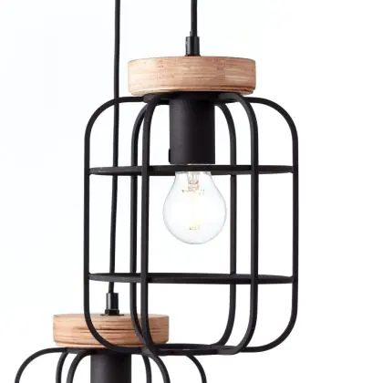 Beschreibung Brilliant Gwen Pendelleuchte Metall Holz Schwarz | 420mm - Geeignet für 3x E27
