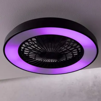 Der Brilliant Mazzaro Ventilator Plastik Schwarz 36W 4700lm - 830-865 CCT+RGB | 485mm - Fernsteuerung Dimmbar integriert sich unauffällig in verschiedene Einrichtungsstile – von urbanem Minimalismus bis zu klassischen Wohnwelten. Die sauberen Linien und die zurückhaltende Farbgestaltung machen ihn zu einer langlebigen Designlösung.