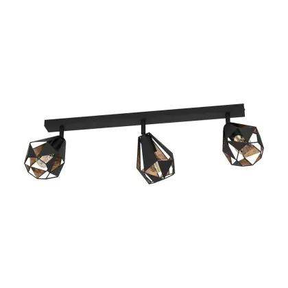 Eglo Deckenleuchte Carlton 7 Stahl Schwarz Bernstein | IP20 - Geeignet für 3x E27