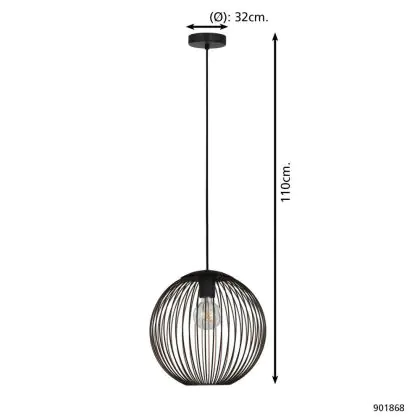 Die Eglo Pendelleuchte Almanzora Schwarz, Bernstein | Geeignet für E27 sorgt für eine angenehme Ausleuchtung und punktet durch modernes Design. Diese Leuchte ist speziell zur Montage an der Decke vorgesehen.