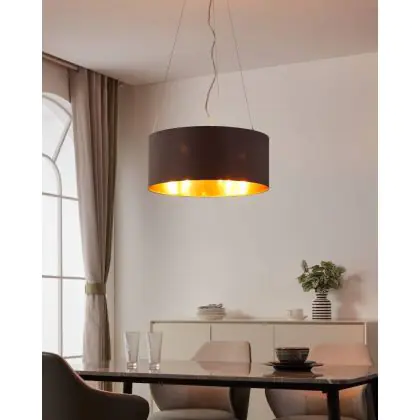Die Eglo Pendelleuchte Maserlo Stahl Satin-Nickel | Geeignet für 3x E27 sorgt für eine angenehme Ausleuchtung und punktet durch modernes Design. Diese Leuchte ist speziell zur Montage an der Decke vorgesehen.
