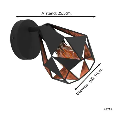Beschreibung Eglo Wandleuchte Carlton 7 Stahl Schwarz Bernstein | IP20 - Geeignet für 1x E27