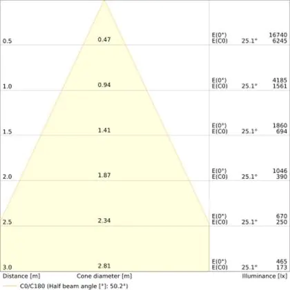 Der LED-Deckenspot kommt mit der Farbtemperatur 3000K - Warmweiß daher. Als Faustregel gilt: Je niedriger der Kelvinwert, desto gemütlicher wirkt das Licht.