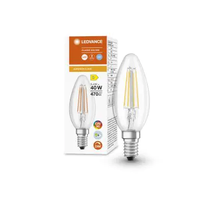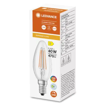 Die Ledvance Superior Classic LED E14 Gebogen-Tip Kerze Fadenlampe Klar 3.4W 470lm - 940 Kaltweiß | Dimmbar - Höchste Farbwiedergabe ist eine effiziente E14 LED-Lampe mit Retrodesign und der perfekte Ersatz für Ihre konventionellen 40W Lampen mit E14. Zudem strahlt sie Licht in der Farbtemperatur 4000K - Kaltweiß aus und punktet durch eine lange Lebensdauer.
