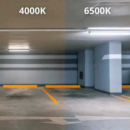 Die LED-Feuchtraumleuchte kommt mit der Farbtemperatur 6500K - Tageslichtweiß daher. Als Faustregel gilt: Je niedriger der Kelvinwert, desto gemütlicher wirkt das Licht.
