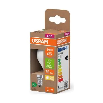 Die Osram LED Classic LED E14 Birne Fadenlampe Matt 3.8W 806lm - 827 Extra Warmweiß | Ersatz Für 60W ist eine effiziente E14 LED-Lampe mit Retrodesign und der perfekte Ersatz für Ihre konventionellen 60W Lampen mit E14. Zudem strahlt sie Licht in der Farbtemperatur 2700K - Extra Warmweiß aus und punktet durch eine lange Lebensdauer.