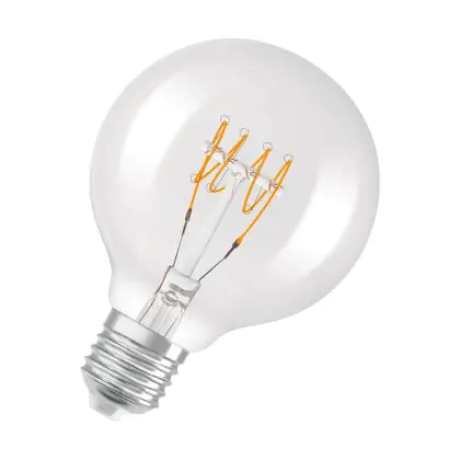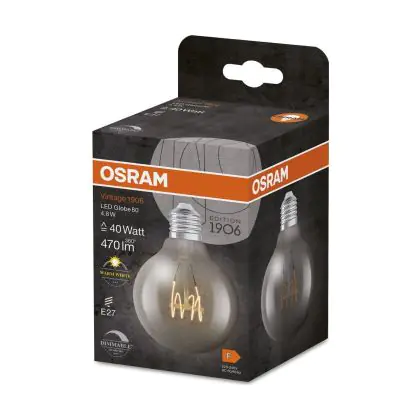 Die Osram Vintage 1906 LED E27 Globe Fadenlampe Klar Slim 4.8W 470lm - 827 Extra Warmweiß | Dimmbar - Ersatz Für 40W ist eine effiziente E27 LED-Lampe mit Retrodesign und der perfekte Ersatz für Ihre konventionellen 40W Lampen mit E27. Zudem strahlt sie Licht in der Farbtemperatur 2700K - Extra Warmweiß aus und punktet durch eine lange Lebensdauer.