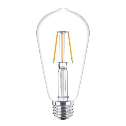 Die Philips Corepro LED Glühbirne E27 Edison Fadenlampe Klar 4W 470lm - 827 Extra Warmweiß | Ersatz für 40W ist eine effiziente E27 LED-Lampe mit Retrodesign und der perfekte Ersatz für Ihre konventionellen 40W Lampen mit E27. Zudem strahlt sie Licht in der Farbtemperatur 2700K - Extra Warmweiß aus und punktet durch eine lange Lebensdauer.