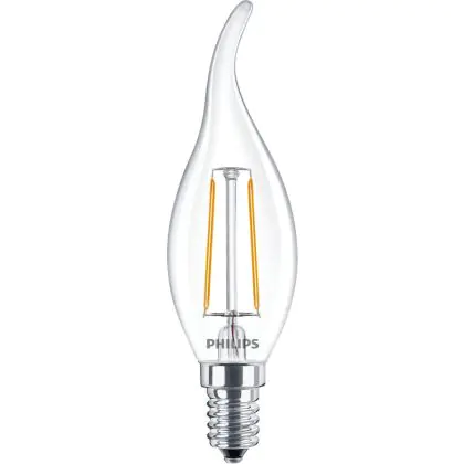 Beschreibung Philips Corepro LED Kerze E14 Gebogene Spitze Fadenlampe Klar 2W 250lm - 827 Extra Warmweiß | Ersatz für 25W