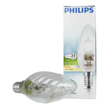 Philips EcoClassic Twisted-Candle B35 sind kerzenförmige, verdrehte Halogenlampen. Diese Lampen ersetzt Ihre alten Glühlampen mit vergleichbarer Form. Diese Halogenlampe besitzt einen E14 Lampensockel. Die Philips EcoClassic 28W E14 230V BW35 CL hat eine Lebensdauer von 2000 Stunden.