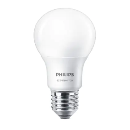 Die Philips SceneSwitch Classic ist eine moderne und effiziente LED-Lampe. Sie zeichnet sich durch einen sparsamen Verbrauch: Daher ermöglicht sie im Vergleich zu herkömmlichen Leuchtmitteln Energieeinsparungen von fast 90%. Zudem können Sie die LED dimmen und zwischen drei verschiedenen Settings der Lichtfarbe extra Warmweiß auswählen.