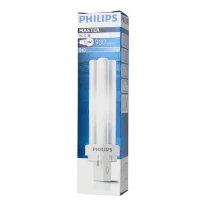 Philips PL-C 2P sind Kompaktleuchtstofflampen mit separaten Stromversorgungen. Sie sind mit einer 2 Pin Buchse ausgestattet und werden mit einem elektromagnetischen Vorschaltgerät verwendet. Philips PL-C 13W 840 2P (MASTER) sind mit einem G24d-1 Sockel-Typ ausgestattet und messen116mm.