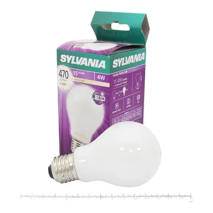 Die Sylvania ToLEDo Retro Ball E27 ist eine moderne LED-Lampe mit Retro-Design. Ihr Verbrauch beläuft sich auf 4 Watt, während sie Ersatz für eine traditionelle Lampe von 35 Watt bietet. Damit sparen Sie fast 90 % an Energiekosten ein. Die LED besitzt einen E27-Sockel und eine Kugelform. Sie spendet extra warmweißes Licht mit einer Farbtemperatur von 2.700 Kelvin.