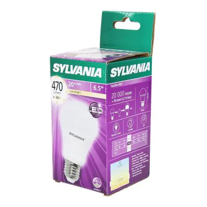 Die Sylvania ToLEDo GLS E27 ersetzt traditionelle Leuchtmittel von 40W, ist dabei aber wesentlich effiziente im Verbrauch mit nur 6,5 W. Darüber hinaus besitzt sie eine extra warmweiße Farbtemperatur und sorgt damit für eine entspannte Atmosphäre.